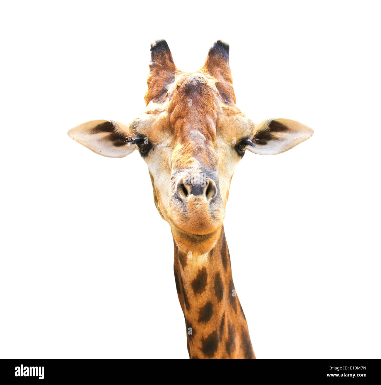 Closeup retrato de jirafa aislado sobre fondo blanco Fotografía de stock - Alamy
