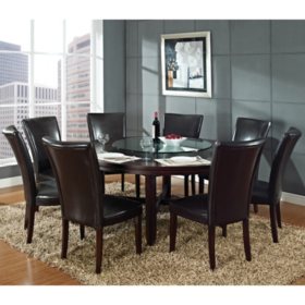 Harding 72 Round Dining Set 9 Pc Dark Brown Leather Chairs Sam S Club