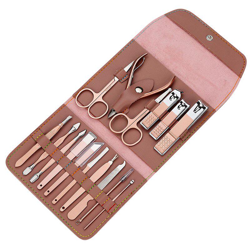 Amazon Com Leipple Manicure Set Professional Nail Clipper Kit Pedicure Kit 16 Pcs Stainless Steel Grooming Kit Nail Care Tools With Luxurious Leather Travel Case Pink Beauty Personal Care